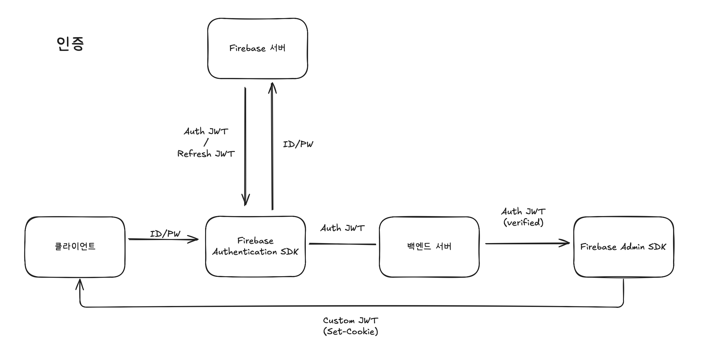 개요최근 들어 AI 덕분에 토이 프로젝트를 매우 쉽게 시작할 수 있게 되었다. 하지만 프로젝트가 '회원' 기반의 서비스라면, 회원 인증/인가 플로우를 구현할 필요가 있다. 이번엔 아내와 함께 제작중인 신혼부부 가계부 서비스에 인증/인가 플로우를 구현한 과정을 소개해볼까 한다. Firebase Authentication 소개https://firebase.google.com/docs/auth?hl=ko Firebase AuthenticationFirebase 인증을 사용하면 코드 몇 줄만으로 손쉬운 사용자 인증, 로그인, 온보딩을 위한 엔드 투 엔드 ID 솔루션을 앱에 추가할 수 있습니다.firebase.google.com 회원의 인증/인가를 담당할 서버를 구축하는 것은 너무나도 큰 작업이기 때문에 이를 직..